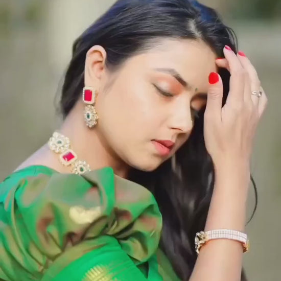 Color Combination - Red And Green: The saree is predominantly in shades of Red And Green. This combination of vibrant and contrasting colors is popular for its eye-catching appeal.