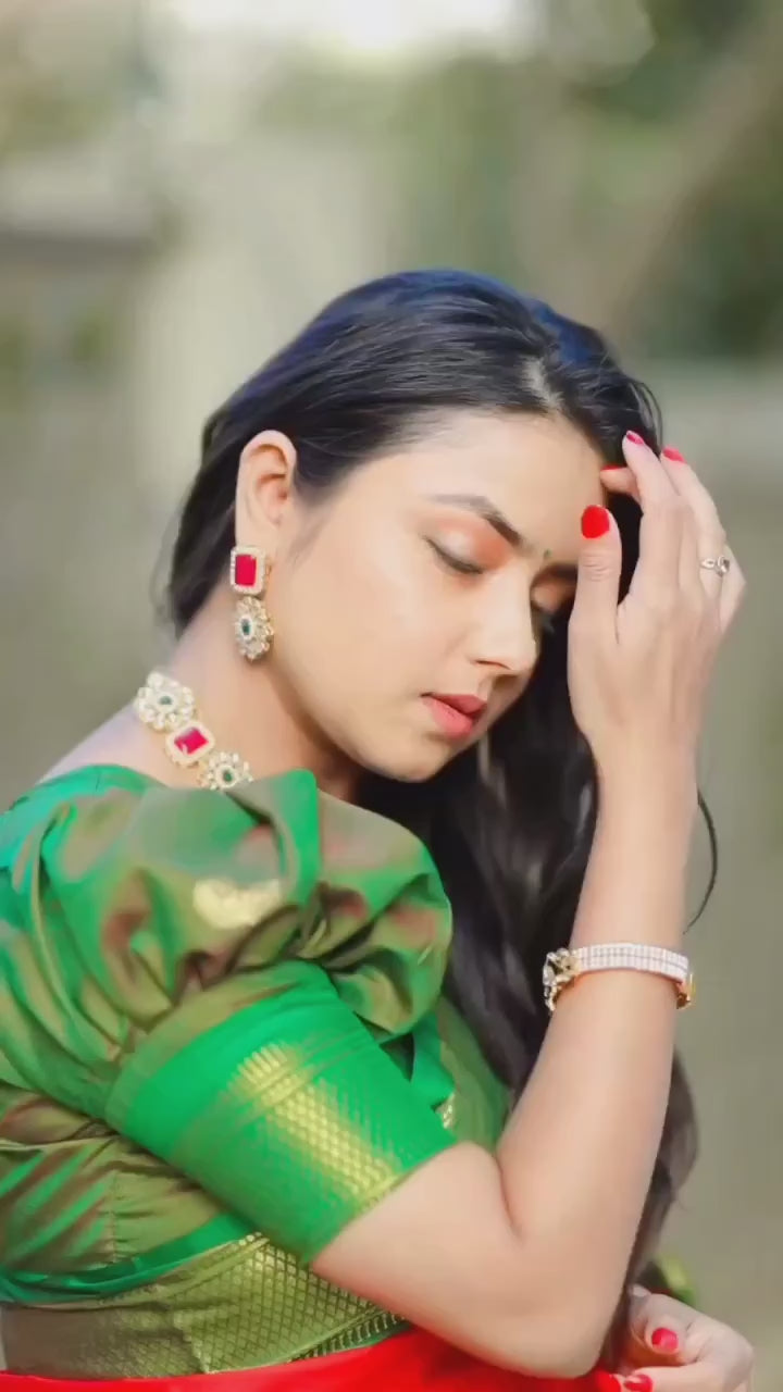 A Paithani Cotton Silk Saree in the colors "Red And Green" that features traditional weaving techniques, zari thread work, and intricate buttas (motifs). Paithani sarees are indeed a renowned traditional garment from Maharashtra, India, known for their distinctive weaving style and luxurious appearance.